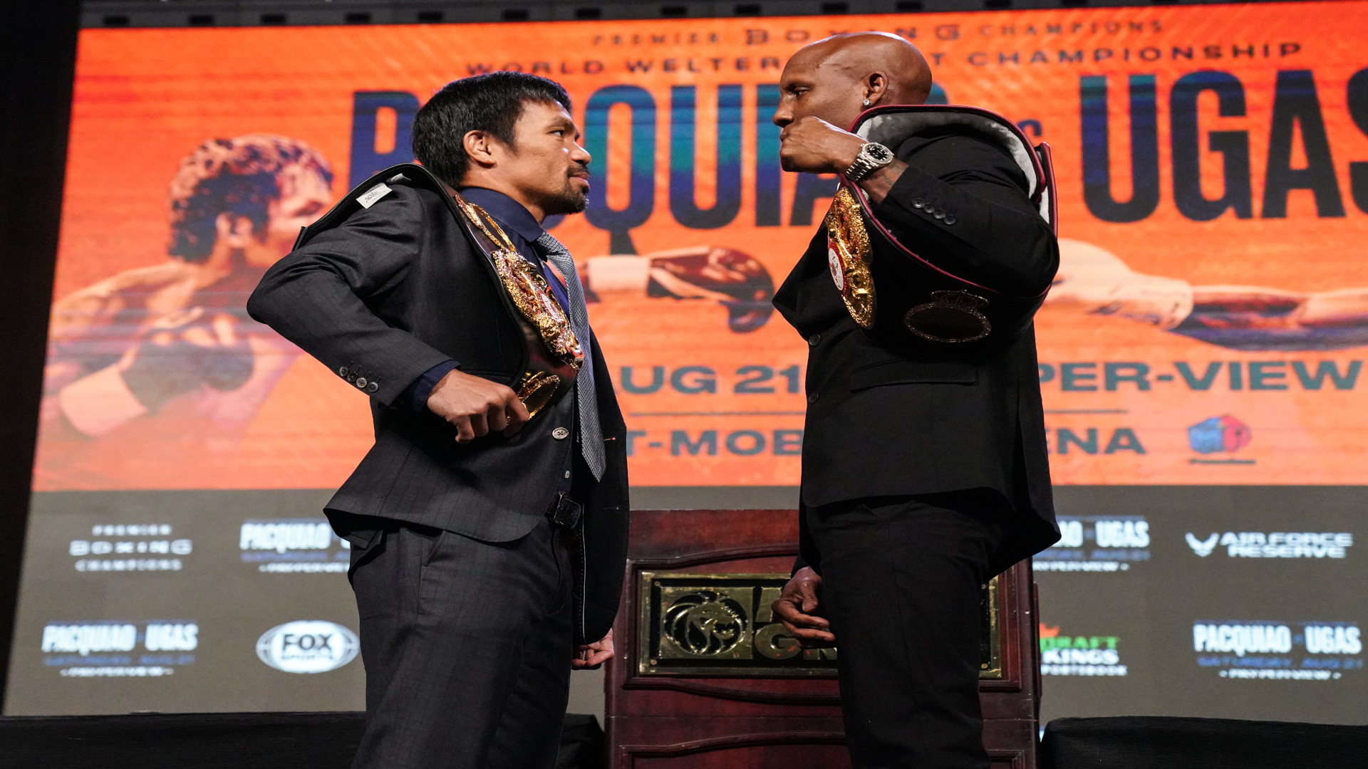 LAS VEGAS August 18 2021 Eight-division world champion and Philippine Senator Manny Pacman Pacquiao and WBA Welterweight World Champion Yordenis Ugás went face-to-face Wednesday at the final press conference before they meet in the highly anticipated FOX. Manny Pacquiao chocará ante Yordenis Ugás este sábado 21 de agosto desde el T-Mobile Arena de la ciudad de Las Vegas. Revisa aquí a qué. YORDENIS UGAS FINAL PRESS CONFERENCE QUOTES PHOTOS.